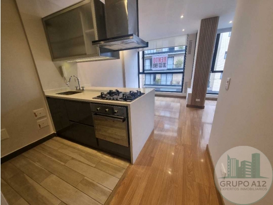 Lindo apartaestudio exterior piso 3 sobre calle cerrada, 39m2,alcoba abierta con baño, sala comedor, cocina abierta, zona de lavandería abierta con punto de gas, baño social, puerta de seguridad, parqueadero cubierto y depósito. Edificio con vigilancia 24/7, caldera, terraza BBQ, gym, parqueaderos de visitantes. El edificio a una cuadra de unicentro de la 122 y 127, parques.