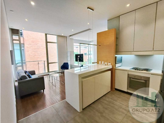 Arriendo amoblado excelente apartamento en Chicó Cabrera, piso alto, totalmente dotado, 1 alcoba tipo loft, muy iluminado, techos altos, con cortinas, con balcón, 2 baños, excelente y amplio Woking closet, puesto de trabajo, sala amplia, cocina con mesón comedor, excelentes espacios para guardar. 2 garajes y depósito. Edificio con: Lounge, 2 salas de juntas, gran gimnasio, lavandería comunal, teatrino, 45 parqueaderos de visitantes, gran cava de vinos con 4 espacios para disfrutar, salón comunal. Es excelente!