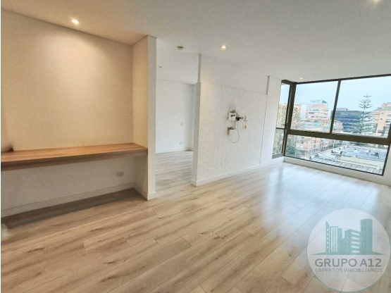 Arriendo en Chicó Apartamento exterior con excelente vista a parque, en piso 7o, con balcón. 1 amplia alcoba con gran Woking closet, un baño privado muy cómodo con gran ducha. Sala comedor con salida a balcón; espacio de puesto de trabajo; baño de visitas. Cocina abierta con lavavajillas y mesón comedor, excelentes espacios para guardar. 2 garajes y depósito. Amplia zona lavandería. Edificio con club house con: 2 Spa con jacuzzis y saunas; zona de MASCOTAS con baño y jaulas para esperarte cuando regreses. Sport coffee con 4 pantallas y salida a terraza. Gimnasio con sala de masajes y terraza; cancha de squash; lavandería comunal; salón comunal con terraza; salón comedor con lockers para empleados. Más de 20 parqueaderos de visitantes. Excelente ubicación.