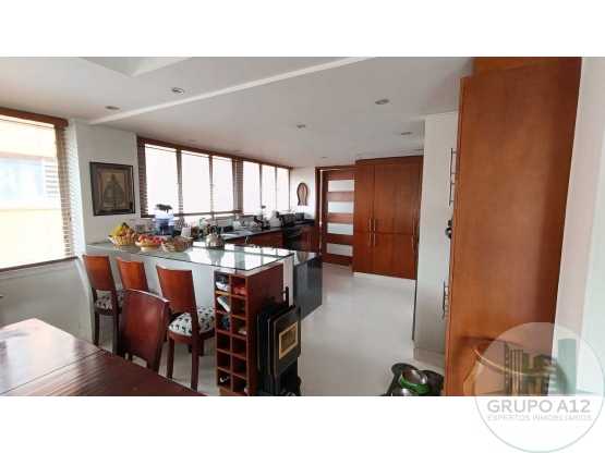 Magnífico apartamento remodelado. (Instalación hidráulica y electrica nuevas) PH iluminado y con vista panorámica, sala comedor en un ambiente amplio, chimenea natural, terraza en la sala, cocina abierta con barra que le presta servicio como comedor auxiliar y zona de lavandería independiente. Estudio/habitación auxiliar. Baño social con ducha. La habitación principal es amplia y cuenta con vestier y baño privado. Dos parqueaderos.