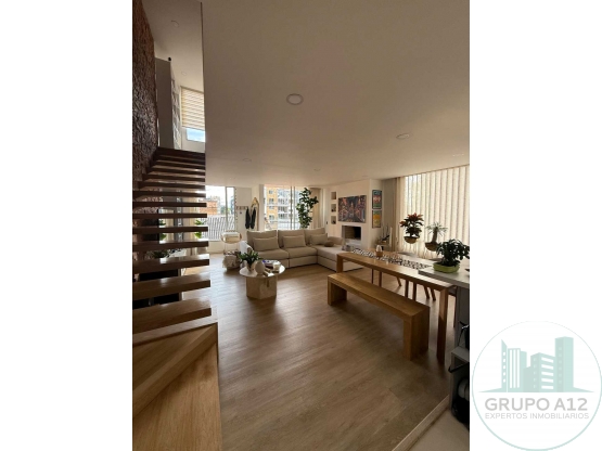 Magnífico apartamento rentando (con contrato hasta octubre). Dúplex remodelado. Sala comedor en un ambiente amplio, con balcón en la sala y chimenea de gas. Cocina abierta con barra que le da servicio como comedor auxiliar y zona de lavandería independiente con ventilación y luz natural. Baño social en el primer piso. En el segundo piso se encuentran las dos habitaciones, ambas con baño privado y el estar de alcobas/estudio. El apartamento cuenta con dos parqueaderos y un depósito. Edificio con vigilancia 24h, recepción, sala de espera y gimnasio.