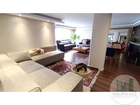 Magnífico apartamento exterior. Remodelado completamente. Sala comedor amplios, con chimenea en la sala. Sala de televisión/estudio. Cocina abierta con zona de lavandería independiente. Estar de alcobas. Dos habitaciones auxiliares que comparten un baño con la zona social y la habitación principal cuenta con baño privado. Dos parqueaderos y un depósito.
