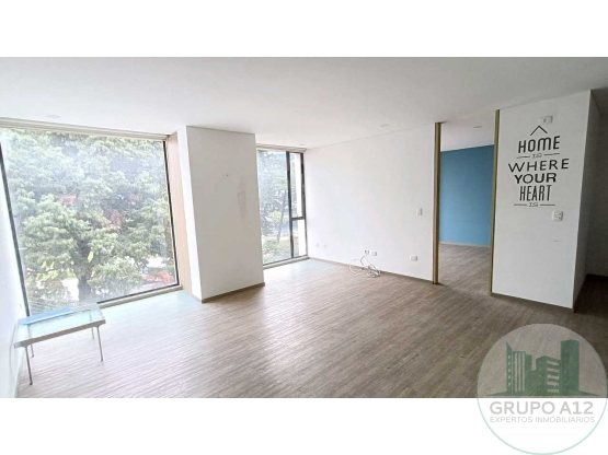Magnífico apartamento exterior con sol de tarde, sobre carrera. Sala comedor amplios en un ambiente, cocina abierta con zona de lavandería independiente, baño social. La habitación principal cuenta con Vestier y baño privado y la habitación auxiliar también cuenta con baño privado. Un parqueadero y depósito privado. El edificio cuenta con recepción, vigilancia 24h y terraza con BBQ.